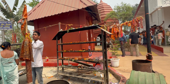 Der Ticketverkauf fürs Schiff Der Zugang zum Schiff erfordert akrobatische Leistungen Der Kapitän in seinem Steuerhaus Gleich sind wir angekommen Viele Betrieb am und im Tempel Der Brahmane ist stark beschäftigt Und alle wollen in den Tempel Für den Rückweg haben wir ein anderes Schiff Der abenteuerliche Weg an Land