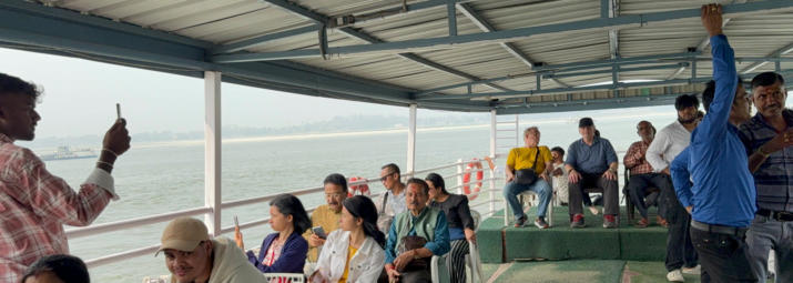 Mit dem Boot geht‘s zur Umananda Insel mitten im Brahmaputra. Am sehr späten Nachmittag treffen endlich unsere Motorräder ein. Die Bilder folgen morgen.