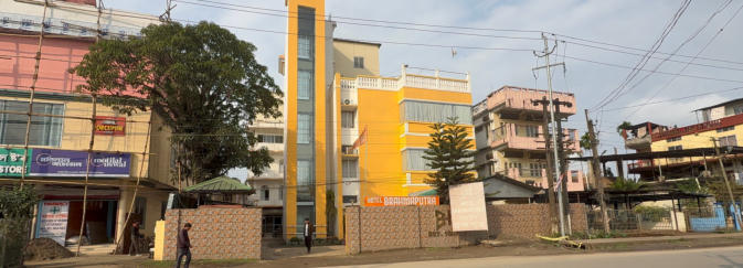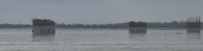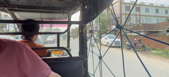 Wir fahren zur Fähre Und rauf auf die Fähre auf dem Brahmaputra Hier soll in drei Jahren die Brücke fertig sein Da vorne ist der Anleger für die Fähre Endlich geht‘s an Land in Sivasagar Wir fahren am Sivadol Tempel vorbei Straßenbauarbeiten Das gelbe Gebäude ist unser Hotel Mit dem Elektro TukTuk zum Silvadol Tempel Silvadol Tempel