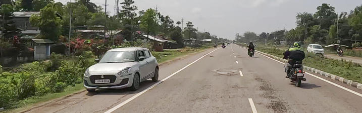 Auf dem Weg nach Jorhat Kommt sehr oft vor: Geisterfahrer auf der Indischen Autobahn. In Jorhat angekommen Im Tuktuk zum Royal Enfield Shop in Jorhat Ja, das ist lecker
