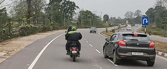 Auf dem Weg zur Baustelle Und noch ein Geisterfahrer auf der Autobahn Da staunen die Jungs, was wir Motorradfahrer treiben Dieses Plakat fand ich an einer Tankstelle. Ohne Schutzhelm kein Benzin. „Dann will ich das Kind mal schaukeln“ Diese Tierfiguren scheinen in Indien sehr begehrt zu sein Wieder im Teegebiet Die Tücher Teepflückerinnen gehen zur Arbeit Ein kleiner Tempel im Naturpark Der Klassiker in Indien: Tiere auf der Fahrbahn Wir biegen zum Hotel ab