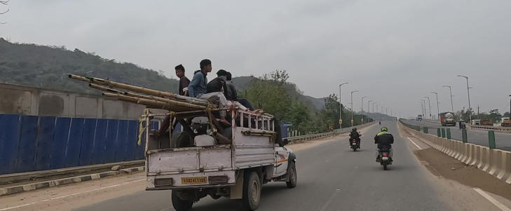 Heute Morgen sind die Straßen leergefegt, sehr Verkehrsarm Die sitzen auf den Bambusstangen, damit sie nicht herunterfallen. Geschwindigkeit: 80 km/h. Eine Prozession auf der indischen Autobahn Die Ortschaften malen die Begrüßung auf die Straße Da will ich mal den Ort Oestereiden bekannter machen Viel Leben im Viertel von unserem Hotel Helmut hat seine Jacke gefunden