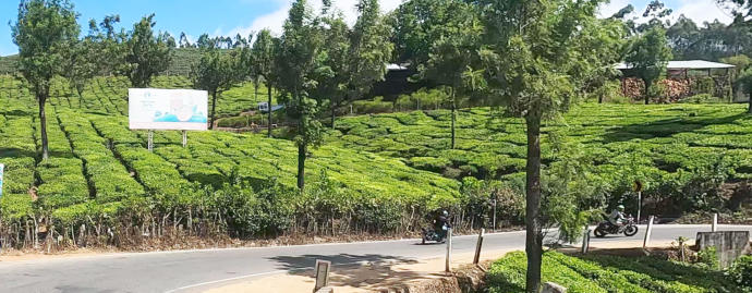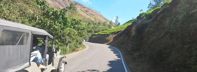 Wir fahren mitten durch den Teeanbau TukTuk Parade Pause unterwegs mit Kokosnusssaft Kleiner Tempel in der Landschaft Viele unübersichtliche Kurven Die beiden Tee-Spezialisten beim fachlichen Erfahrungsaustausch