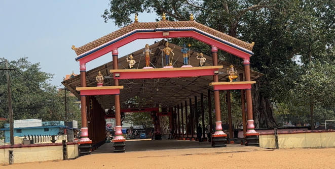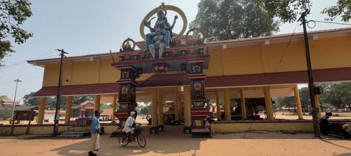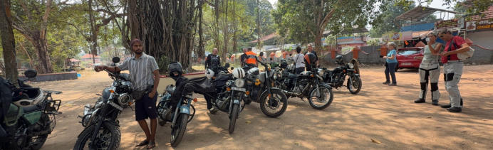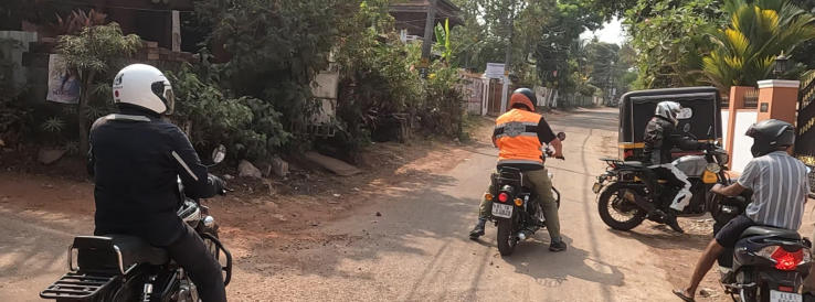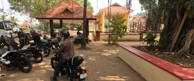 Um 12:00 Uhr starten wir zu einer 45 km Runde um Varkala. Wir gewöhnen uns an den indischen Verkehr. An einem Tempel machen wir eine kurze Pause.
