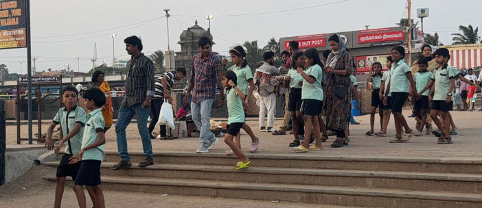 Kanyakumari ist der südlichste Punkt Indiens, den ich heute zum dritten Mal besuche. Unterwegs besuchen wir einen Tempel. Leider konnten wir den Sonnenuntergang nicht beobachten, da die Wolken die Sicht verdeckten. Heute sind wir 150 km weit gefahren.