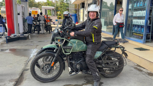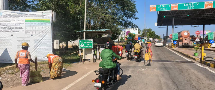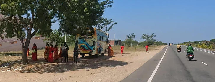 Helmut in vollem Ornat Am Rand der Straße gibt es viele einfache Raststätten Übliche Ortsdurchfahrt auf der Autobahn Auch die Inder brauchen mal eine Pause Die Mautstationen umfahren die Motorradfahrer kostenfrei auf einer speziellen, schmalen Spur Gleich sind wir am Ziel Das Eingangstor von Madurai Hotel erreicht Mit dem Tuktuk zum Tempel