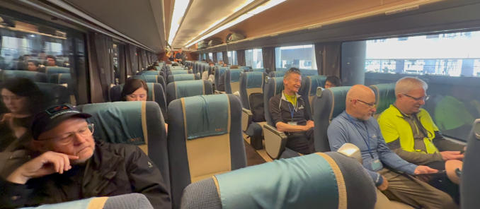 Heute Morgen verlassen wir Tokio mit dem Zug. Wir bewegen uns auf Japans höchsten Berg zu, dem Fuji. Wir steigen erst in eine Standseilbahn und dann in eine klassische Seilbahn um. Wir übernehmen die E-Bikes, und es geht über 50 km zu unserem Ziel dem Yamanaka See.