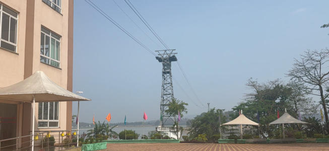 Hier in Guwahati unweit unseres Hotels gibt es eine Seilbahn über den Brahmaputra. Die Seilbahn ist 1800 m lang. Natürlich haben Günter und ich die Seilbahnfahrt wahrgenommen. Danach haben wir eine kleine grüne Oase, den Nehru Park, aufgesucht. Und am Nachmittag sind wir noch einmal durch den Ort gebummelt.