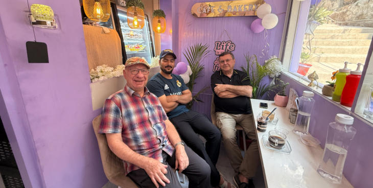 Stillleben neben dem Hotel Mit dem TukTuk geht‘s zum Tempel Gemüseverkauf in der Nähe des Tempels Mamas Corner ist ein kleines, gemütliches Café Günter, Rouf und Helmut im Café