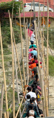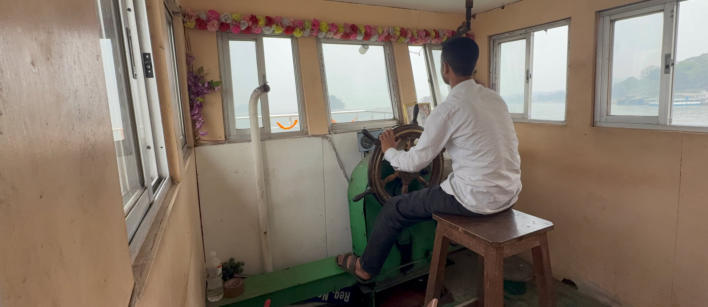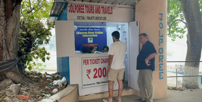Der Ticketverkauf fürs Schiff Der Zugang zum Schiff erfordert akrobatische Leistungen Der Kapitän in seinem Steuerhaus Gleich sind wir angekommen Viele Betrieb am und im Tempel Der Brahmane ist stark beschäftigt Und alle wollen in den Tempel Für den Rückweg haben wir ein anderes Schiff Der abenteuerliche Weg an Land