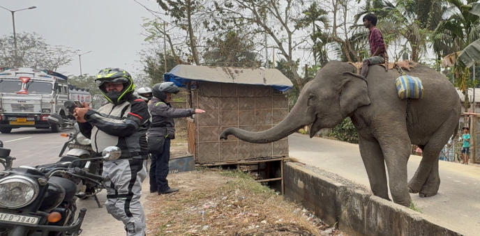 Früher START in Shillong Kleiner Markt am Rand der Straße Den Elefanten haben wir zufällig getroffen Im Tierkorridor wird vor Nashörnern gewarnt Und tatsächlich sehen wir ein Nashorn in freier Wildbahn Hier fängt der Nationalpark an