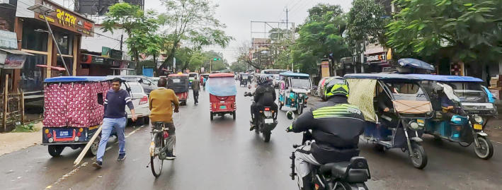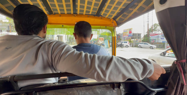 Auf dem Weg nach Jorhat Kommt sehr oft vor: Geisterfahrer auf der Indischen Autobahn. In Jorhat angekommen Im Tuktuk zum Royal Enfield Shop in Jorhat Ja, das ist lecker