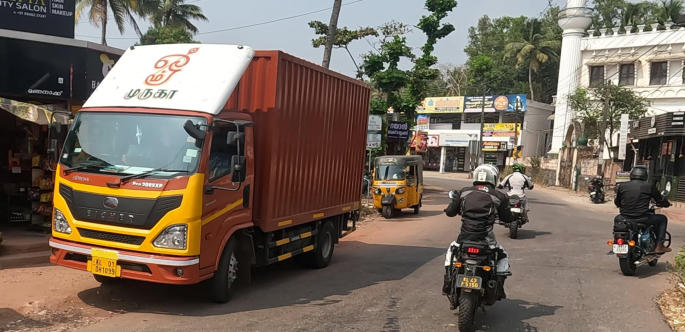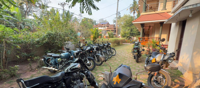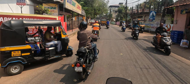 Um 12:00 Uhr starten wir zu einer 45 km Runde um Varkala. Wir gewöhnen uns an den indischen Verkehr. An einem Tempel machen wir eine kurze Pause.