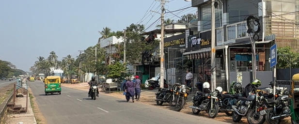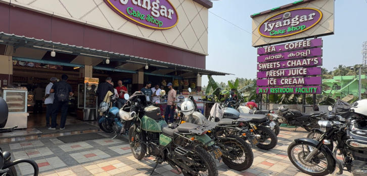Heute unsere erste Verschnaufpause Eine riesige Gebäckauswahl Gleich geht es weiter Am Tempel angekommen Kanyakumari, der südlichste Punkt Indiens Es ist viel los hier Wir kämpfen uns durch den indischen Verkehr Begrüßung am Stadt Eingangstor Ziel erreicht. Wir sind angekommen Alle beobachten den Sonnenuntergang