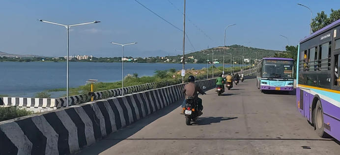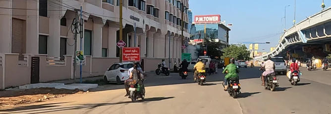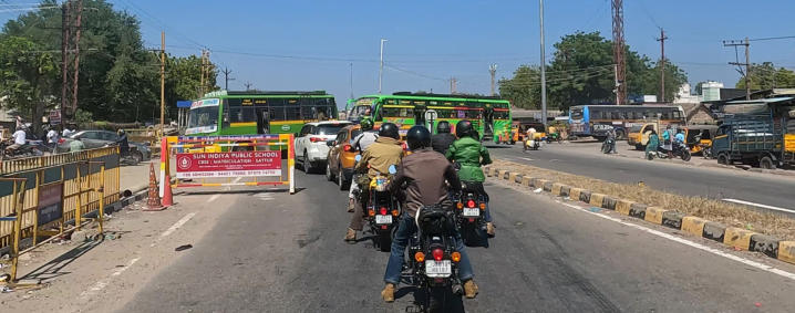 Helmut in vollem Ornat Am Rand der Straße gibt es viele einfache Raststätten Übliche Ortsdurchfahrt auf der Autobahn Auch die Inder brauchen mal eine Pause Die Mautstationen umfahren die Motorradfahrer kostenfrei auf einer speziellen, schmalen Spur Gleich sind wir am Ziel Das Eingangstor von Madurai Hotel erreicht Mit dem Tuktuk zum Tempel