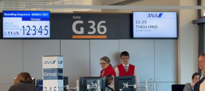 Wegen eines Streiks fallen heute die Flüge mit Lufthansa aus. Letzte Nacht habe ich meinen Flug umbuchen müssen. Deshalb muss ich sehr früh aufstehen, um meinen Flieger nach Wien um 7:00 Uhr zu erreichen.In Wien steige ich um , und es geht mit „All Nippon Airways“ nach Tokio.