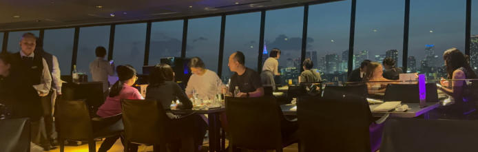 Die Eingangshalle Der japanische Garten vom Hotel Natürlich mit Wasserfall Unter anderem im 17. Stock das Restaurant mit herrlicher Aussicht